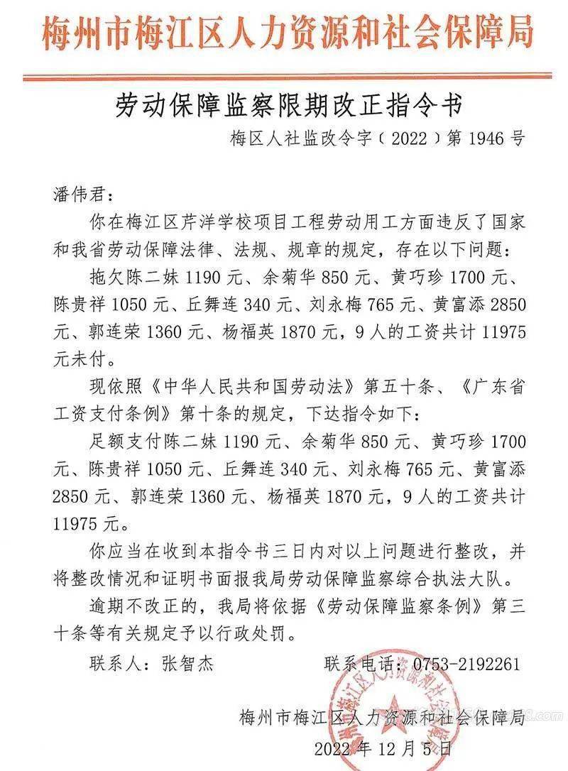 追讨!一“老板”在梅江区芹洋学校项目工程拖欠9人工资