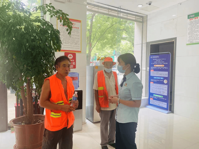 赵大爷是负责河南省上蔡县邮政分公司附近路段保洁的环卫工人,他将自己负责路段的卫生清扫完毕后,就来到了上蔡县邮政分公司所设立的爱心驿站喝口水,歇歇脚河南邮政。他说:“自从邮政建了这个驿站,让我们整天在外的环卫工人大热天能进来凉快会,渴了来喝点水,累了进来歇歇脚,赶上下雨天能进来避避雨,还给我们提供雨伞,对我们户外劳动者来说真是一件大好事,非常感谢邮政这样有爱心的单位!” 上蔡邮政分公司作为国有企业,践行国企使命,秉承为人民服务的企业宗旨,积极与上蔡总工会对接合作,在上蔡西大街中心所设立了“爱心驿站”,配备了桌...