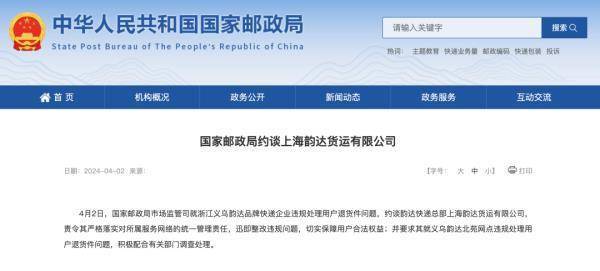 4月1日,中央广播电视总台《焦点访谈》栏目播出《快递何以变“盲盒”》,报道了韵达速递义乌北苑营业网点涉嫌违法售卖退件等问题。 2日,国家邮政局市场监管司就浙江义乌韵达品牌快递企业违规处理用户退货件问题,约谈韵达快递总部上海韵达货运有限公司,责令其严格落实对所属服务网络的统一管理责任,迅即整改违规问题,切实保障用户合法权益;并要求其就义乌韵达北苑网点违规处理用户退货件问题,积极配合有关部门调查处理。 论斤称的“快递盲盒”真能拆出“宝”? 《焦点访谈》实地调查幕后链条→ 现在盲盒备受消费者喜爱,甚至出现了“快递盲盒”...