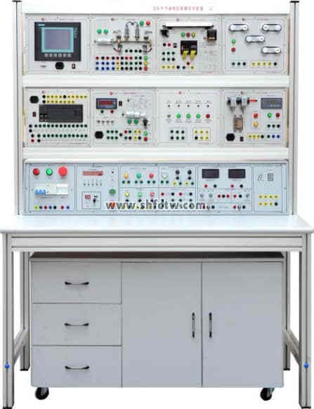 TW-360型可编程控制器实训装置 TW-360型可编程控制器实训装置采用铝木结构实训台,实训台架由实训屏(含电源控制屏)、实训桌、实训储物柜三大部分组成机麻控制器。实训屏包括电源指示和控制单元、时间管理器(含电源保护)单元、指示灯和按钮单元、选择开关和蜂鸣器及继电器单元、仪表单元、直流电源单元、七段数码管单元,电源控制屏的左右两侧分别装有一个两插插座,将外部电源进线端装在电源控制屏的左侧(采用航空插连接结构);实训屏上部采用三根不锈钢型材组成通用实训模块固定结构,一次可摆放8个实训模块,模块采用标准化结构、互换性...