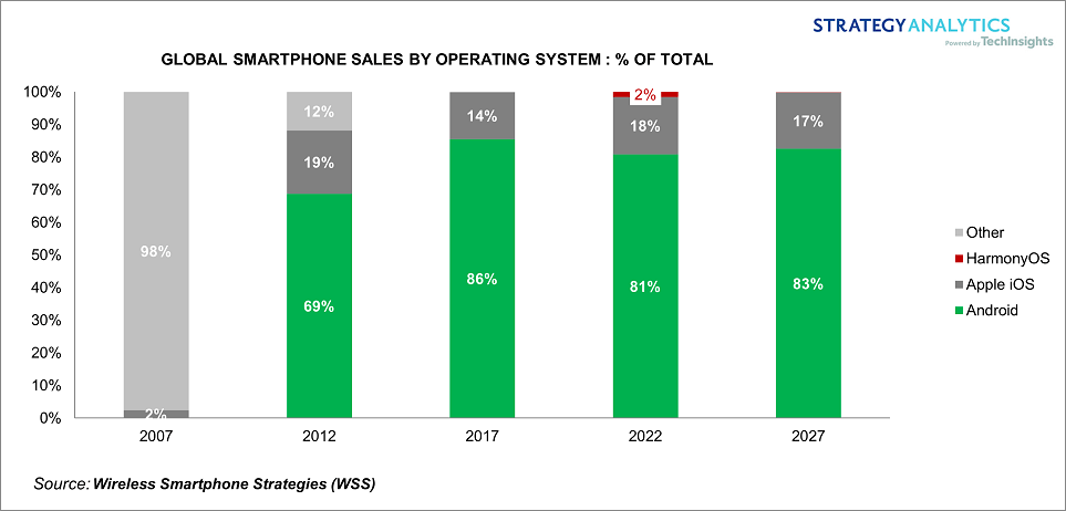 IT之家的朋友们,大家好,我是雨仔。 几天前,Strategy Analytics 公布了一份最新的研究报告,显示华为鸿蒙 HarmonyOS 手机全球份额在 2022 年将达 2%。 还预测在 2023 年,华为鸿蒙 HarmonyOS 操作系统的智能手机销量会更进一步。 虽然和安卓 81% 以及苹果 iOS 18% 相比,2% 微乎其微,但超越了当年的 Windows Phone,成为全球三大操作系统之一。 智能手机发展到今天,不仅设计和硬件走向一致,系统软件层面也逐渐大同小异。 毕竟各家的 OS 或 UI...