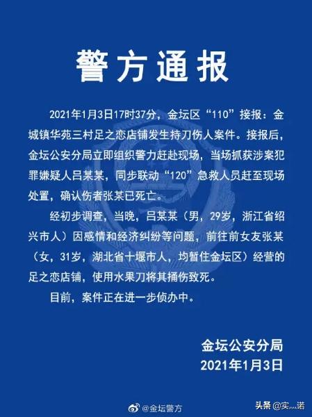 2021年1月3日17时37分,江苏省常州市金城镇华苑三村“足之恋”店铺发生一起重大刑事案件伊之恋。犯罪嫌疑人吕某某因感情和经济纠纷等问题,将“足之恋”的经营者,同时也是其前女友的张某捅伤致死。 案发后,犯罪嫌疑人吕某某自己拨打报警电话,等待警方到达案发现场伊之恋。 钱是导火索,情是根源犯罪嫌疑人吕某某,男,现年29岁,是浙江绍兴人伊之恋。被害人张某,女,现年31岁,湖北十堰人。两人曾经是男女朋友关系,后来因为种种原因分手。 要说男女恋爱自由,分手也当自由,可显示当时往往因为恋爱期间牵扯到很多东西,导致分手并不自由...