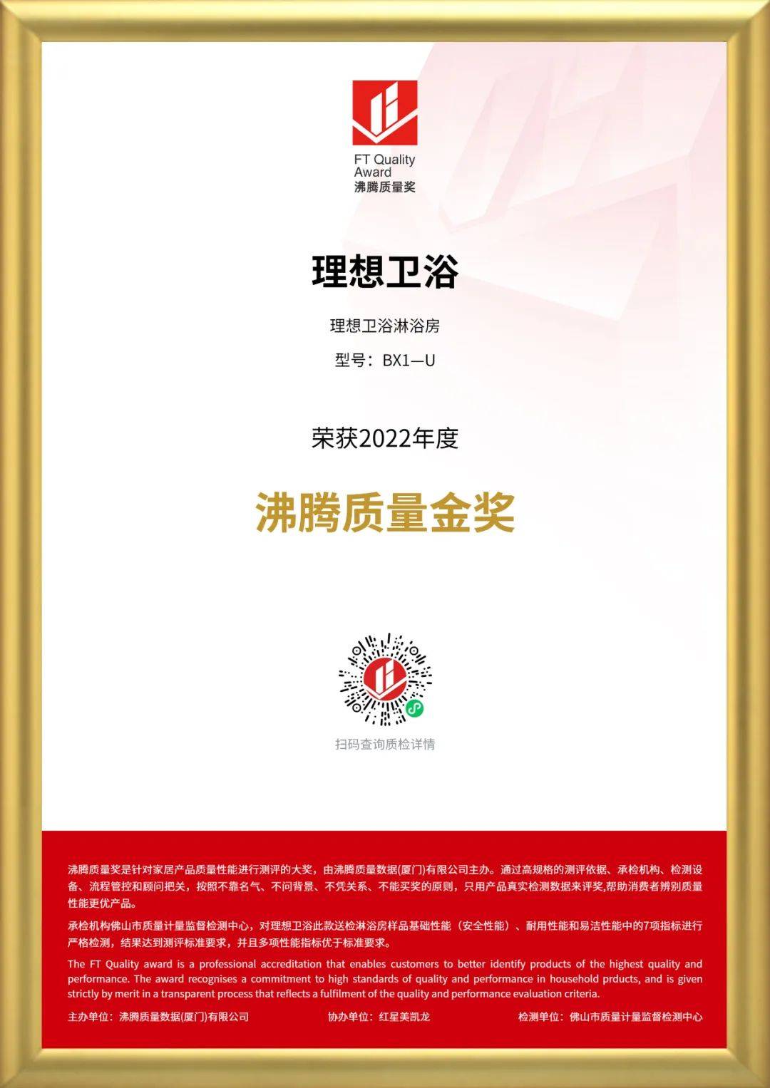 理想卫浴获沸腾质量金奖|获奖产品代表了该品类当前质量的风向标