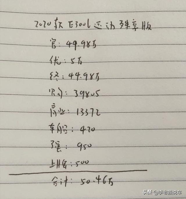 李老猫说车为你非专业解答各类选车用车问题奔跑e级定位于一款中大型奢华轿车产物,次要对飚奥迪a6l和宝马5系,那款车在2019年全年累计销量为15.39万台,均匀月销在1.3万摆布,属于绝对的支流之选奔跑e系列报价。其较为高端的品牌调性和超卓的内饰气氛都比力能博得消费者承认。 价格方面,2020款奔跑e300l运动殊享版,官方指点价49.98万,优惠幅度在5万摆布,末端裸车成交价44.98万摆布,全数落地再加购买税39805,车船税420,强险950,贸易险133...
