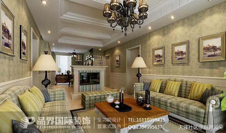 【圣湖不雅澜国际拆修】156平米美式气概客厅效果图研发——太原品界粉饰
