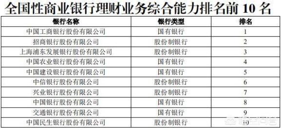 只要是正式发布的理财产品,都需要经过两会审批上报,是各大银行可靠的理财产品。相对而言,大型银行资金充足、体系完善、分销能力强,主要依靠品牌影响力和全方位的产品服务;而小银行往往发行能力较弱,但产品收益率较高,主要是为了吸引客户,增加竞争力。 11月16日,银行业金融管理评级托管中心发布《全国银行理财综合能力评价报告(2018年上半年)》,对全国商业银行综合理财能力进行系统排名。前十名如下: 至于银行理财业务在整个市场的综合能力,也是排名靠前的,其中排名前十的银行是五大银行和股份制银行。 列表中,各银行综合理财...