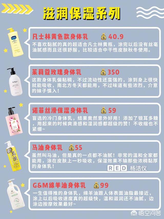 马上炎天就到了斯味特,身体乳是每个女生必败的护肤品,我掐指一算,我竟然已经用了40多款身体乳了,用我妈的话来说,我就是朵败家奇葩,浴室架子比化装台都丰硕,我总结的身体乳也分良多品种,有保湿的,美白的,成效的,敏感肌可用的,香氛的,平价的,每个品种都有值得安利的产物,所以我做了一个超良心测评整理,字数问题所以我都分类做成图片了,性质急的蜜斯姐间接看图就好了~做图很累的,希望看到的蜜斯姐点个赞哦 PS:价格都是我的动手价斯味特,偏高偏低的仅供参考哈 下面是关于一些身体乳的小问题斯味...