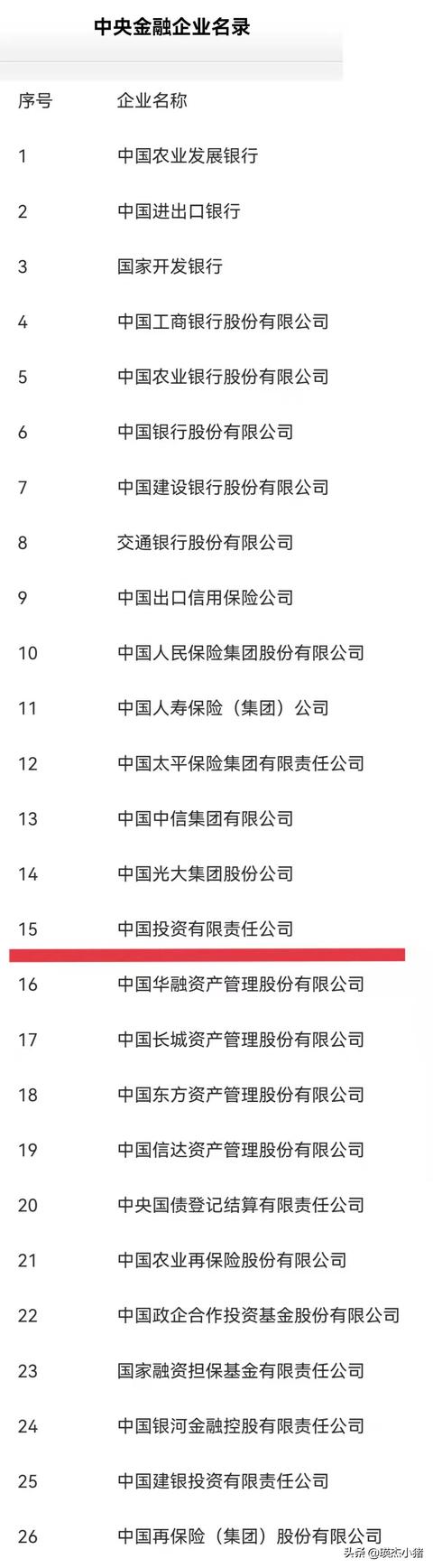 根据财政部官网公布的名单,截至2021年底我国共有26家金融央企,按照主要领导的级别分为两个层级,前15家属于“副部级”,后11家属于“正厅级”中国国际金融公司。 首先,介绍一下金融央企的概念中国国际金融公司。金融央企的官方称呼叫做“中央金融企业”,是指由财政部(或委托汇金公司)代表国家履行国有金融资本出资人职责的国有独资、国有控股以及国家实际控制的金融企业。 目前,财政部对“中央金融企业名录”进行管理,行业主管机构(如央行、银保监会等)对金融央企履行监管职责中国国际金融公司。 具体名单如下: ˂img src="...