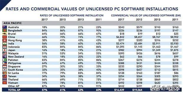 那个问题问出了中国软件行业之伤痛行业中国。为什么说没有像Adobe如许的软件公司,次要跟国内的情况有关。 1、重视常识版权不敷,盗版率居高不下起首我们来看看贸易软件联盟(BSA)发布的《2018 年全球软件查询拜访陈述》,从中我们能够大致领会中国和美国电脑软件的盗版情况行业中国。 从陈述中我们能够看到: 在中国,2011年电脑软件盗版率为77%,2013年为74%,2015年为70%,2017年为66%行业中国。固然每年都在小幅度下降,但仍然居高不下。从全球来看:盗版率显然与经济程度息息...