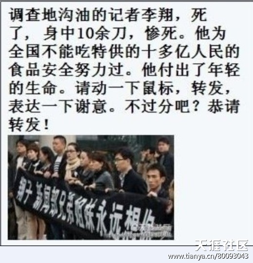 国务院总理主持召开国务院常务会议通过关于依法公开制售假冒伪劣商品和侵犯知识产权行政处罚案件信息的意见 国务院总理:房屋等不动产将统一登记可公开查询-看河南地沟油 ——河南省人民政府职能部门丧失社会责任保护假冒伪劣集团危害社会应谴责 国民心声:物重以秤为准;公平以法为准;民以国为家,国以法而立;民爱国如家,国立法为民河南工商局企业查询。太平盛世,国家法律是保障国民合法生存的公平秤,正义国民不接受任何组织、贵族和权力在公平秤面前搞缺斤短两违法特权! ——于国福有话说 核心提示:由于在投诉、报案、...