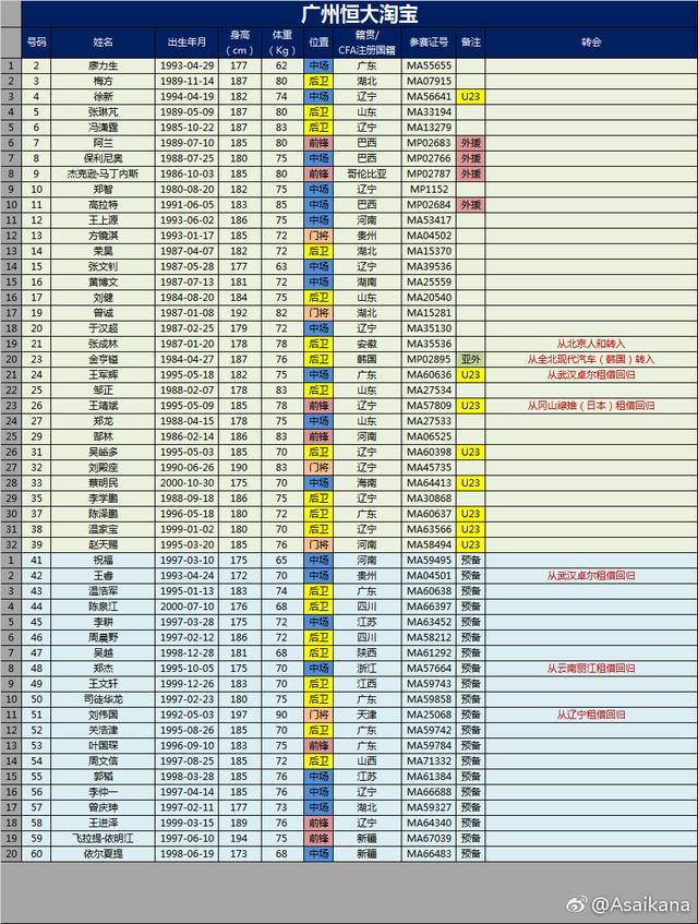 借用了德国转会市场网站(TransferMarkt)中国区办理员 Asaikana的一张关于2017赛季广州恒大一线队以及预备队的名单胡博文。 从图上能够看出题主所问的胡博文没有呈现在一线队以及预备队的名单中,还有包罗杨超声、刘海东、杨鑫、刘世博、胡睿宝、张奥凯等人也同样没有呈现在名单中胡博文。 A大对此也有所解答胡博文。 据小编领会胡博文,胡博文固然没有在一线队以及预备队报名,但是与恒大仍有合同在身,所以仍跟着恒大训练,至于能不克不及找到出路,最少得比及明年的转会期才气找新店主了!...