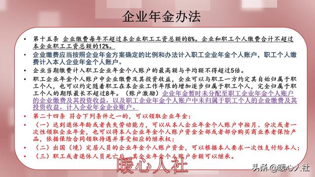 企业年金是什么?企业年金是我们国家建立的一项补充养老机制无穷大公司。早在2004年,我们就根据人社部的《企业年金试行办法》,在一系列国企建立起了企业年金制度。2018年2月1日起《企业年金办法》正式实行,代表着我们的企业年金制度管理纳入了规范。 题目所说的领取20年很明显就不现实,到现在也不过15年的时间无穷大公司。 企业年金是我们国家的基本养老保险制度以外的一些补充养老机制无穷大公司。通过个人和企业共同缴费的方式,筹措相应的养老资金,委托有资格的基金管理公司管理。...