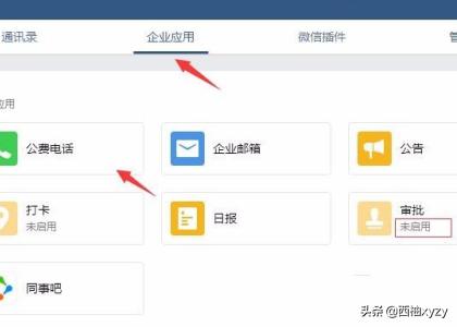 2、进入导航菜单中的【企业应用】企业免费德律风,在根底应用中打到【公费德律风】