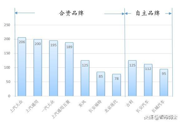从2017年的数据看,国内乘用车销量排名靠前的次要是中外合资企业中的群众、通用等品牌,而代表自主品牌的吉利、长安、长城固然进入前十,但排名第一的吉利也仅位于第六行业中国。