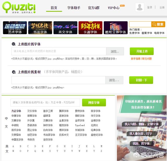 那个网站最大的益处就是当你不晓得那是什么字体的时候,能够把图片上传到那个网站,网站会按照你的图片识别出字体,并且字体都是能够免费下载的