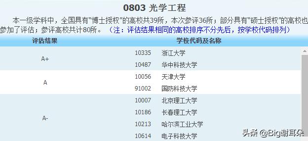 光学工程:光电子,光电科学与工程中国信息分类网。按照教育部最新的第四轮学科评估,获评光学工程专业B档成就以上的大学有24所,此中浙大、华科、天津大学、国防科技大学居国内高校前4名。