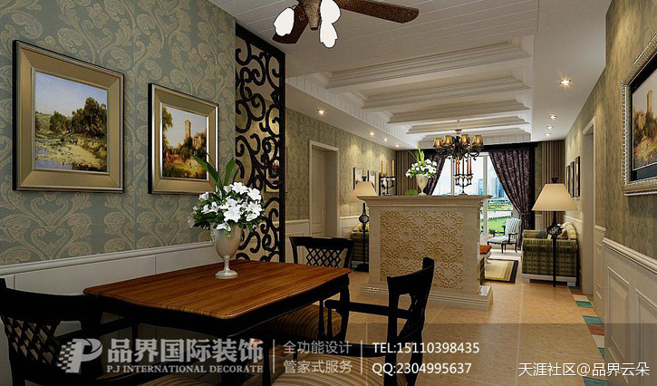 客厅做为待客区域,一般要求简洁明快,同时拆修较其它空间要更明快光鲜凡是利用大量的石材和木饰面粉饰;美国人喜好有汗青感的工具,那不只反映在软拆摆件上对仿古艺术品的喜欢,同时也反映在拆修上对各类仿古墙地砖、石材的偏心和对各类仿旧工艺的逃求上客厅粉饰效果图。总体而言,美式气概的客厅是宽阔而富有汗青气息的。