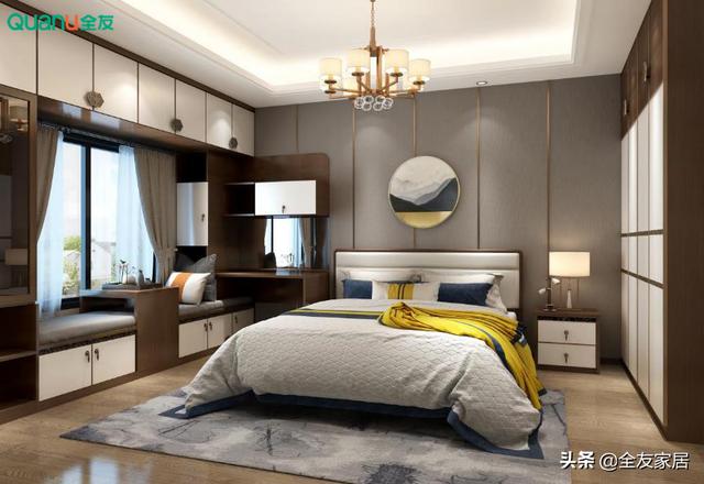 主卧沿用了客厅的色彩和气概,但增加了明黄色的比例,营造出卧室温馨温馨的气氛中式拆修图片。【全友全屋定造】的飘窗搭配古风茶盘做为休闲品茶处,设想师还操纵转角增加了打扮台,并且顶柜、底柜都有着不错的储物空间来包容物品。顶柜柜门的拉手以“祥云”外型呈现,别开生面。