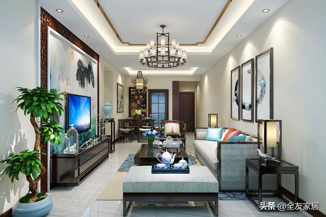 不难看出,【全友家居】的新中式家具摒弃了深挚的色彩和繁复的雕花,整体外型简洁、线条流利、轮廓明晰,又保留了东方古典神韵,更契合人们对现代栖身空间的审美中式拆修图片。即便混搭了美式灯具、艺术感花瓶等,也不会给人紊乱之感。