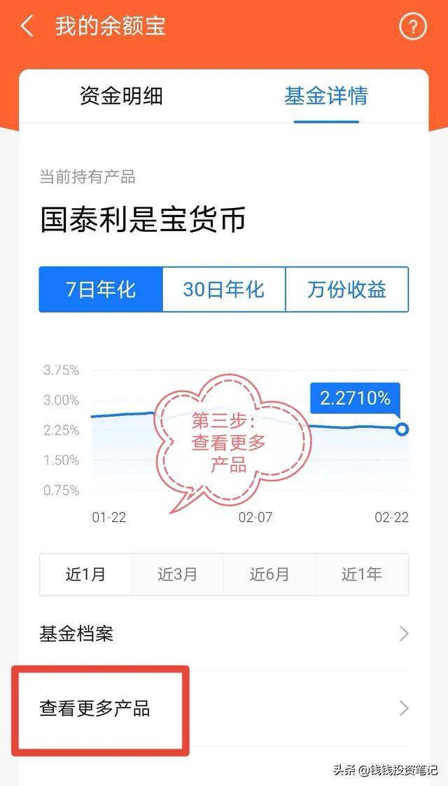 第二步:在余额宝界面中,点击右上角,选择【基金详情】各大银行理财富品。