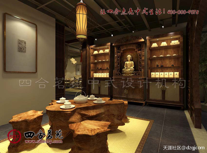 存眷人道化表达以最平实、安然平静整体给人一种、亲热、朴实的情况,人们能够在新中式茶室拆修效果图案例细心勾勒的得天独厚的中式茶室效果图,以展示设想情况中、品茶、赏乐、聊天、赏茶、赏壶、充实感触感染中式生活文化中蕴含的奇特魅力中式拆修效果图。