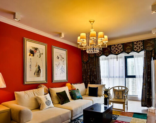 极具中式气概的客厅拆修效果,配上那款无吊顶的拆修,让整个空间的视野扩大了很多,一款散发温暖色彩的吊灯,红色的布景墙带来了热情,让整间客厅都弥漫着欢乐的气氛家拆效果图网站。黑色的窗帘带来了奥秘稳重的色彩。
