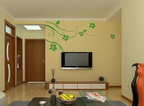 那款无吊顶客厅拆修效果图中,也是接纳了石膏线做为独一的粉饰效果,布景墙接纳淡黄色的粉刷,还有绿色图案的粉饰,给整个客厅增添了生命的色彩家拆效果图网站。
