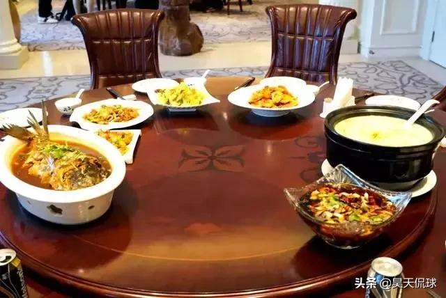 球员们上午训练累了,回到酒店后中餐非常重要,因而每天中午城市有红烧鱼、猪肉炖粉条、油焖大虾等荤素搭配的一共12个菜华君。每天的餐食是由酒店根据运发动体量的需求,专心烹造、科学搭配的,在严酷把控的同时,还会尽可能地满足各人差别的口味。