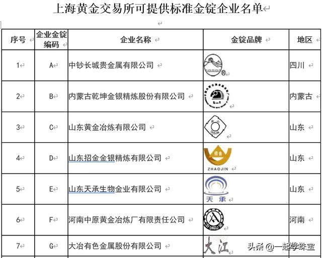 1、上海黄金交易所可供给尺度金条企业有24家内蒙古乾坤金银精炼股份有限公司,详细名单如下: