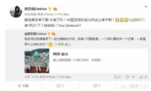 也正是这条动态激怒了男足主帅李铁,根据媒体爆料,男足方面认为唐艺榕的爆料暴露了男足的情况,让韩国男足能够更好的准备比赛,所以一怒之下,男足方面对于唐艺榕的采访进行了拒绝的态度,于是,也就有了唐艺榕自爆被封杀的情况千榕。