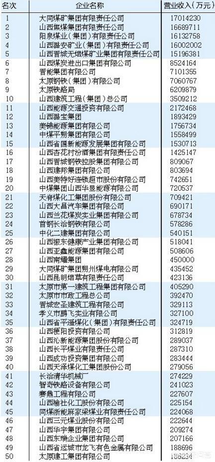 山西百强企业大部分来自太原和长治蓝顿旭美,最近长治才发布了长治工业制造五十强: