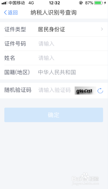 进入到【纳税人识别号查询】页面后,接着输入个人的身份证号码、姓名等相关信息纳税人识别码。