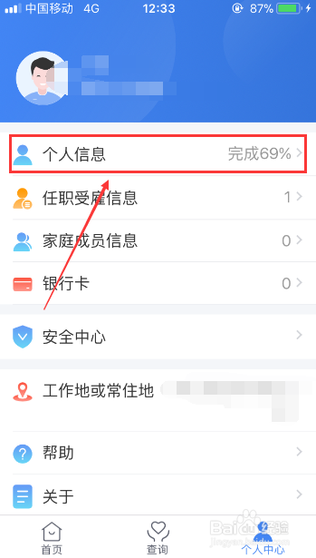 第二种方法首先进入到【个人中心】页面,之后再点击【个人信息】这个功能纳税人识别码。