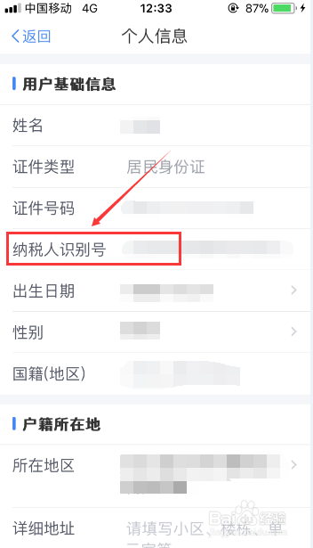 进入到【个人信息】页面后,接着再点击【基本信息】按键纳税人识别码。