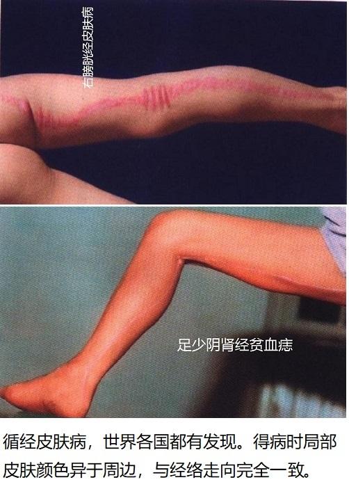 现在发现有人会在某些情况下自发出现可见的经络线,中国、日本、韩国都发现过,就是在身上出现了与经络走向一致的红色或紫红色或白色的线李莉波。循经皮肤病是一种十分引人注目的经络现象,由于它行程清楚,肉眼可见,直观地显示了经络的特殊循行路线,被人们誉为可见的经络现象。迄今为止,我国学者总计观察了25个病种、343名患者的478条皮肤病损中,分布于经络全程或接近全程的共137条,占总数的28.67%。循经皮肤病以其直观的形态学变化,从一个侧面证实了古人所描述的经络循行路线是客观存在的。经络中运行的是什么?极有可能就是第一信使,第一信使是指各种细胞外信息分子,又称细胞间信号分子即细胞因子,诸如内分泌激素,前列腺素,气体信号分子(NO)以及免疫细胞产生的免疫细胞因子。这些生物活性分子由体内各种不同的细胞产生后,能够通过血液、淋巴液、各种体液等不同途径,作用到细胞膜表面,引起细胞内的特定反映。这就能解释中医所说的经络中传送的是什么,主要是气体信号分子一氧化氮(NO),因为早就有人做过试验,刺激某些穴位,如气海穴确实可以产生更多的气体信号分子一氧化氮(NO),人工造模也显示中医气虚者符合一氧化氮低水平者。所以经络并不虚幻,而是实体。为什么人死后的解剖没有发现经络?因为经络是细胞间的联络方式,这种方式使第一信使物质在经络线上富集,但不是实体管道,所以只能存在于活体,尤其是气体信号分子一氧化氮(NO),在死尸上是找不到的。如同移动通讯基站之间及基站与手机之间的联络信号,有电时信号可测量,停电后怎么可能找到网络?西医发现了心电、肌电、脑电,可以做出心电图、肌电图、脑电图,但解剖尸体时是找不到的,道理一样。