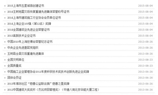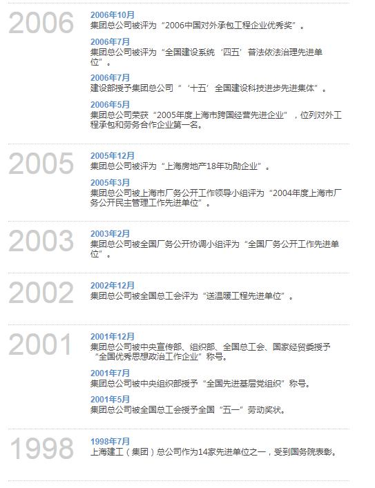 上海建工公司治理水平和股东回报获市场认可中建八局山东分局。自上市以来保持着稳定的高分红,分红率近五年来平均在40%以上,位列建筑国企前列。公司股票进入“上证380”指数样本股和港交所“沪股通”标的,纳入“MSCI中国指数”和“富时罗素全球股票指数”。在上市公司信息披露工作中获“A”类评价。荣获“全国厂务公开民主管理示范单位”称号。入选“福布斯2018年世界最佳雇主榜”。上海建工和旗下市政总院成功获首批“上海品牌”认证。党委书记、董事长徐征入榜《哈佛商业评论》中文版“2019中国百佳CEO”,是该榜单自2016年推出以来连续四次入选。徐征被评为“2018年上海市优秀企业家”。