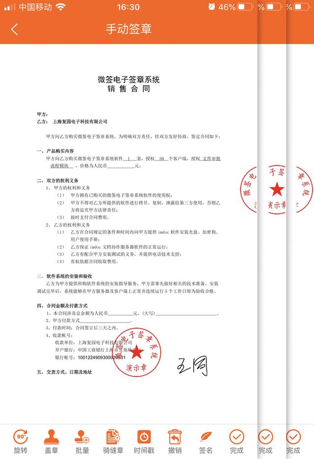 微签还支持多种电子签章方式,例如骑缝章、批量盖章、单页章、加盖时间戳等等,都是可以满足的万企易。