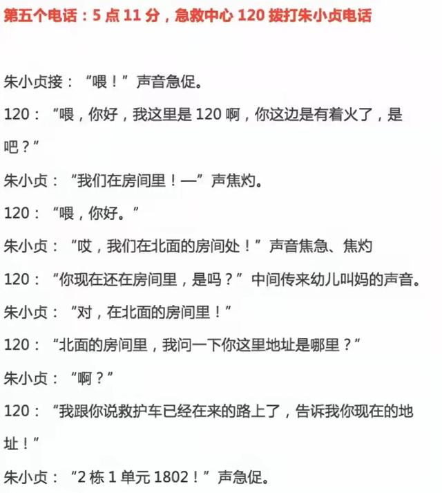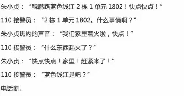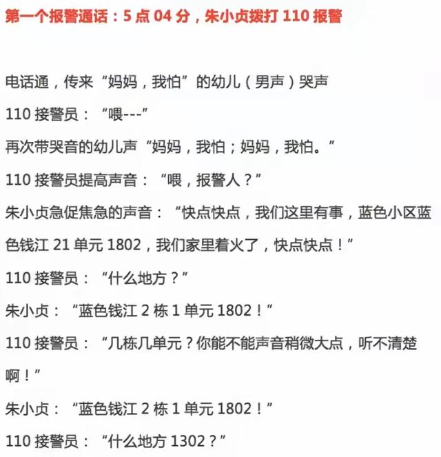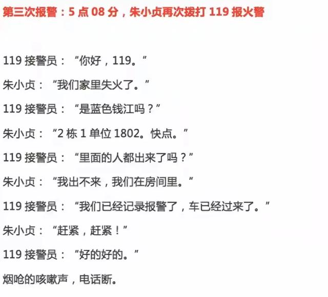 2017年六月二十二日王庆莲,杭州某高挡小区某栋18O2发生大火,女主小贞在凌晨五点左右发现家中着火,她叫醒保姆赶紧起来清理消防通道,保姆慌乱中跌倒在地,小贞带着孩子准备逃生,却发现家里大门密码锁打不开了,她打电话给丈夫林生斌,没想到他手机关机,小贞打电话给左邻右舍,可是都沒人接听,小贞叫保姆从保姆专用电梯下去找物业来救火,此时家里水也被人停了,保姆怕火烧到她,她用泡衣服的水倒在身上跑了出去,小贞带着孩子退到卧室,把门关上阻止火蔓延到这里,小贞在卧室里打火警电话: