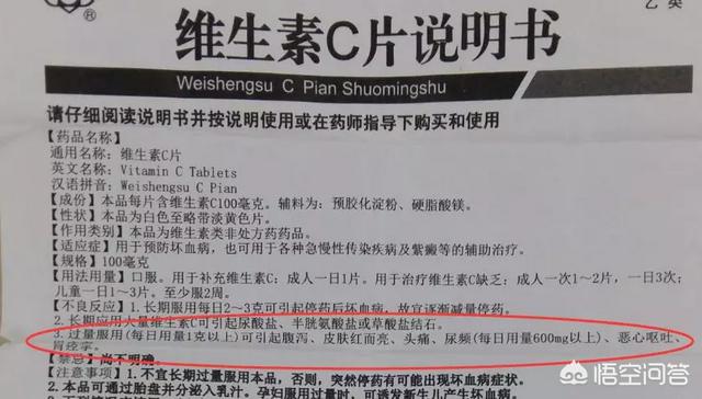 维生素C片说明书指出,每日用量1000mg以上,可引起腹泻、皮肤红亮、头痛、恶心呕吐、胃痉挛等症状,而每日超过600mg就会引起尿频辉瑞投资有限公司。