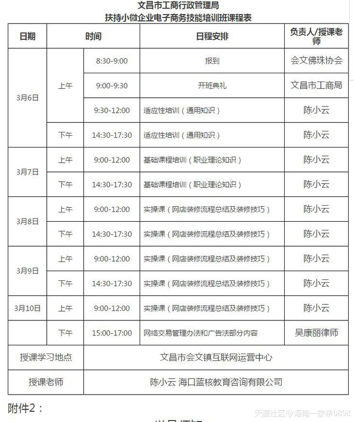 文昌市工商行政管理局扶持小微企业电子商务技能培训班课程表