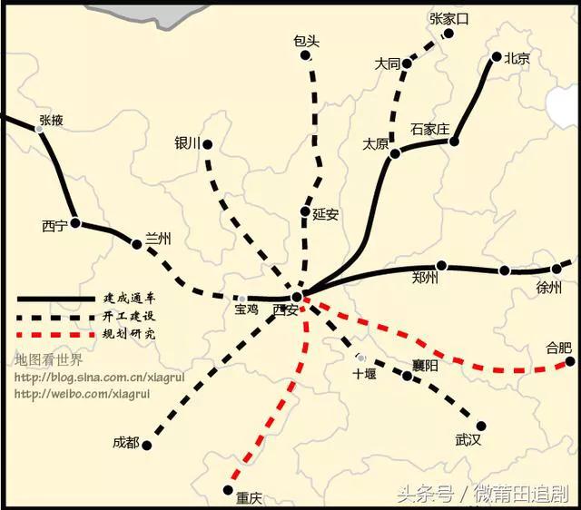 普铁时代,西安枢纽地位弱于兰州,只接入了陇海线一个主干道;在“四纵四横”时代也只接入了徐兰客运专线;但进入“八纵八横”时代后,西安成为路桥通道、呼南通道、包海通道三个主干道的交汇京通物流。