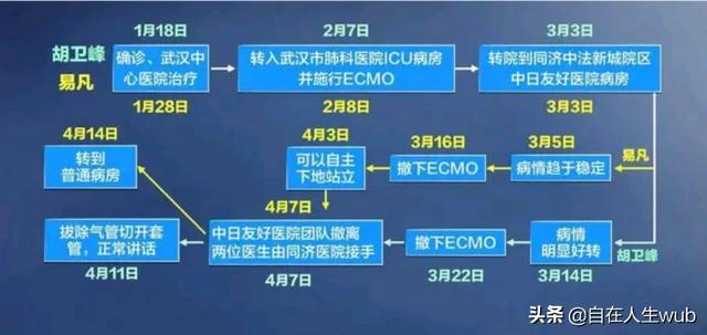 在当时,易凡、胡卫峰两位医生都属于重症感染者,几乎没有救回的希望夏俊锋。王辰院士当即提出“换导管”,这是一个医学技术含量特别高的手术,根本无人敢于接手,中日友好医院呼吸重症主任(博士)詹庆元挺身而出,接受了这项重任;在其团队与死神进行惨烈博斗后,奇迹终于发生,两位感染的大夫,幸获重生!然后又经过两个多月的治疗保养,到了4月初,终于抢救回了两位英雄的生命。一段广为流传的视频显示,他们皮肤发黑,让人心疼!