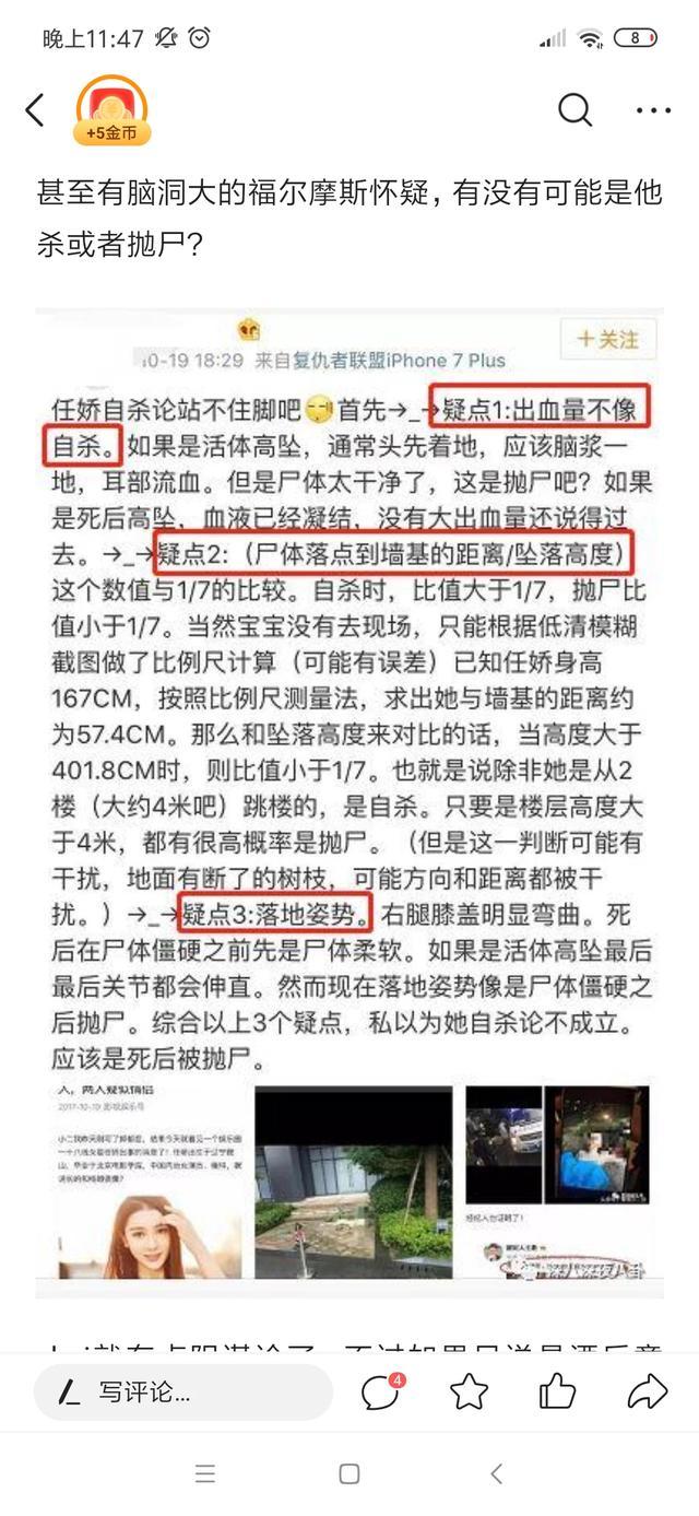 疑点一,有人会光着自杀吗,现场马赛克图触目惊心,女生太惨了,没穿衣服,自杀是很需要勇气的,任娇没有蔡姣。