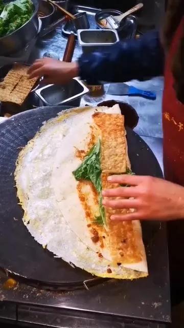 健谈在排队买煎饼果子时,眼看前面没几个人,却等了半个小时左右,因为最前面那人买了好几套煎饼果子,在等煎饼果子途中那人跟商家和买煎饼果子的人群聊的非常嗨,聊哪里的食物好吃,还聊到哪里蜜枣的粽子便宜,2元一个且非常甜糯等等天津哈哈笑。好不容易把买煎饼的大户熬过了,之后又出现了一个大爷,大爷没排队,而是在旁边拿个小板凳坐着,手里还有跟拐杖,还是商家委托年轻人把煎饼送到他老人家手上。后来又出现一个大叔拿了两个鸡蛋放在商家那,也算是一种排队的形式,看来天津煎饼果子自己带鸡蛋不仅可以食用,还可以实用,用来排队也是非常妙的,可谓一举两得。