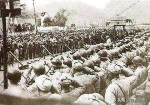 枪声也是解放军和投诚的守军兵团直属队换防的约定朝天轮。鸣枪以后,直属队放下武器,垂手肃立,静静的等候解放军的到来。