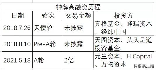 此前,钟薛高曾在2018年相继完成真格基金、峰瑞资本、经纬中国参与的天使轮融资,以及天图投资、头头是道投资基金参与的Pre-A轮融资,创下当年国内食品行业最大融资纪录峰瑞资本。