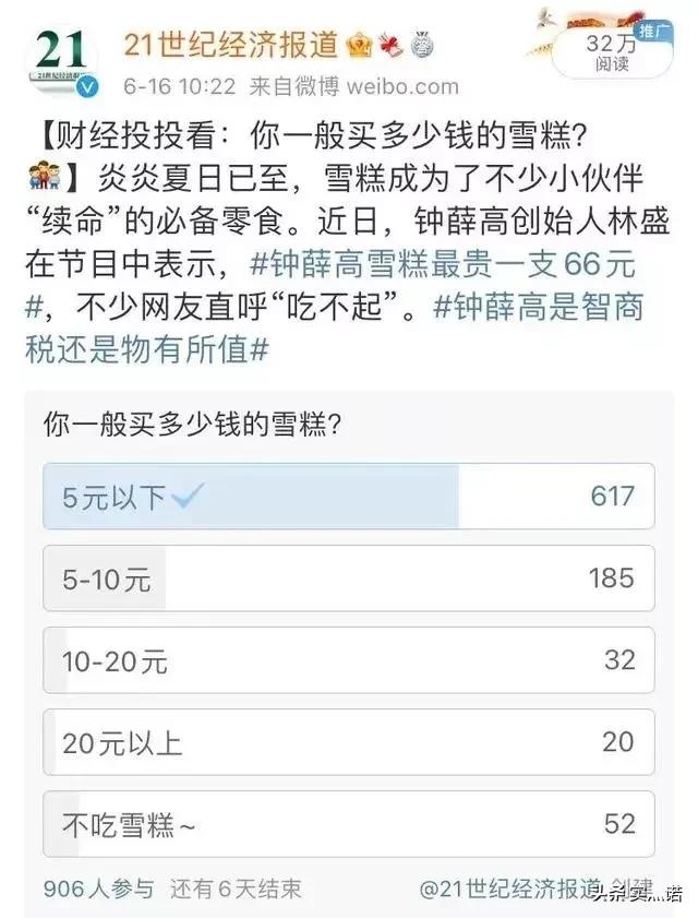 且不说一支雪糕值不值66元,单就林老板这高高在上的姿态,就让不少人在感情上接受不了,这大概也是钟薛高犯众怒的最初起因峰瑞资本。