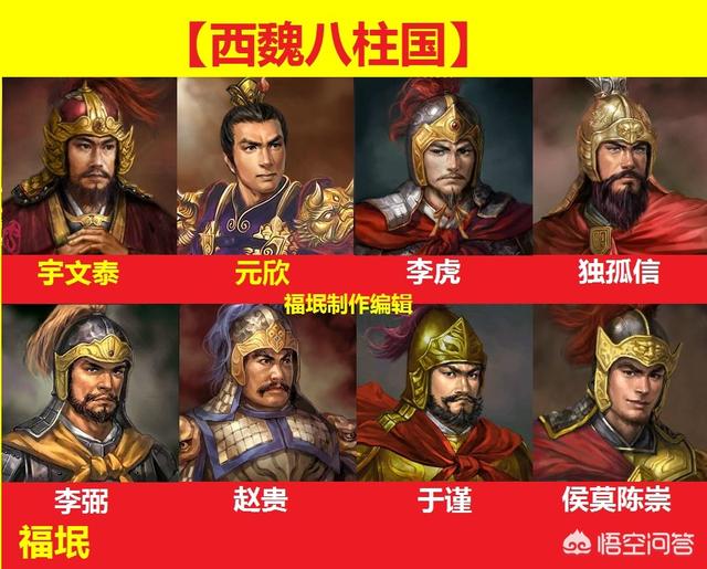 六柱国每个柱国辖两个大将军,他们是谁呢?宗室三人:元育、元赞、元廓;宇文派:宇文导(宇文泰侄儿)、宇文贵、贺兰祥(宇文泰外甥);侯莫陈家族:侯莫陈顺;其他人:李远、达奚武、杨忠(杨坚之父)、豆卢宁、王雄陈芮。
