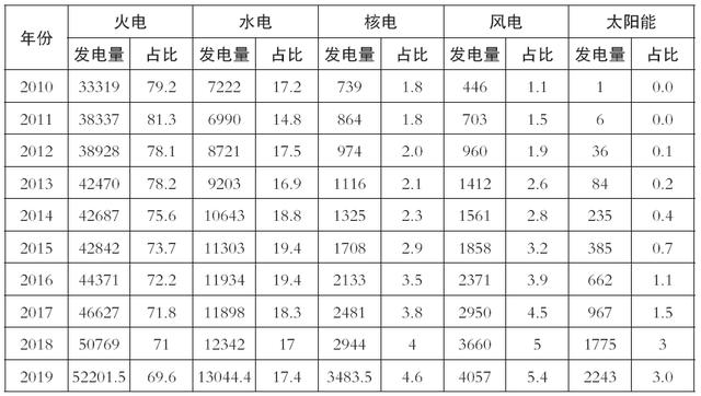 据国家统计局数据显示,2019年全年中国火力发电量达到46522.1亿千瓦时;2020年全年中国累计火力发电量达到了52798.7亿千瓦时,累计增长1.2%国华能源投资有限公司。2019年全年中国水力发电量达到了11534.4亿千瓦时;2020年全年中国累计水力发电量达到了12140.3亿千瓦时,累计增长5.3%。从数据显示可以看出,火力发电仍是我国最主要的发电模式,而且占的比重较大,在七成以上,而水力发电占了总发电量的不到两成。请看下图,我国十年来各种电源发电量所在总发电量的比例情况。