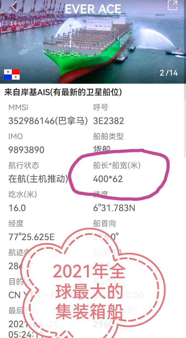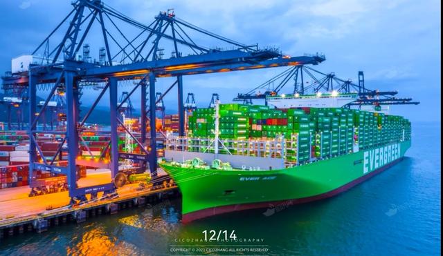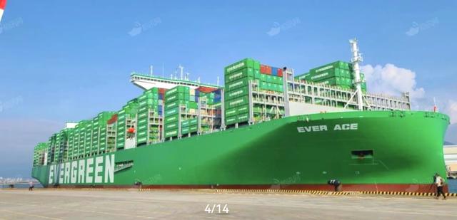 目前世界上最大的集装箱船可以装23992个标箱(TEU)东方国际集装箱。船名“长范”轮,EVER ACE,中国台湾的长荣海运公司,和前段时间堵住苏伊士运河的长赐轮是同一家公司的船。
